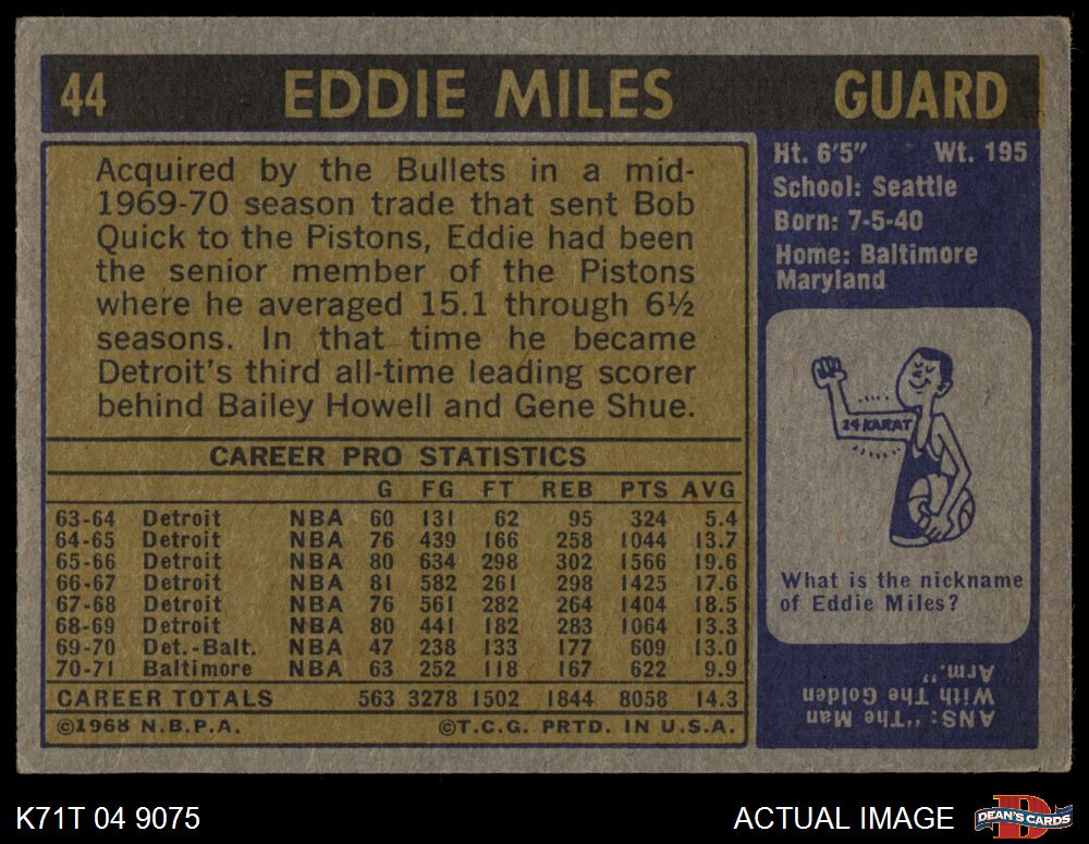 1971 Topps #44 Eddie Miles 3.5 - VG+