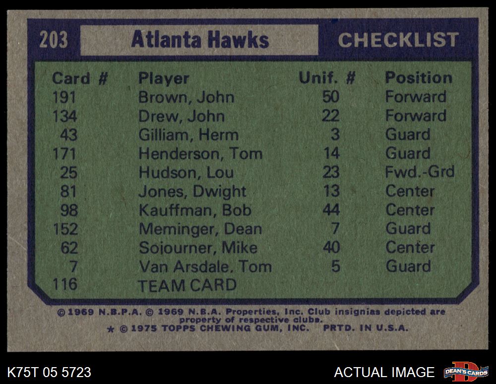 1975 Topps #203 Atlanta Hawks 7 - NM