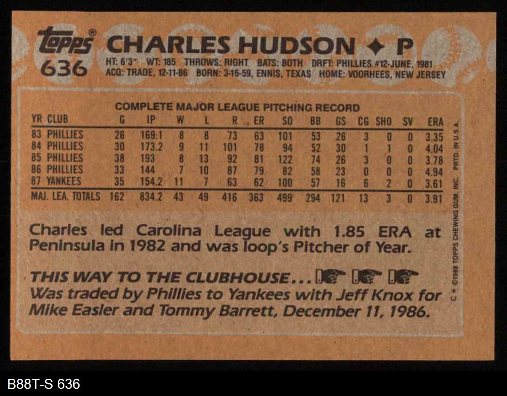 1988 Topps #636 Charles Hudson