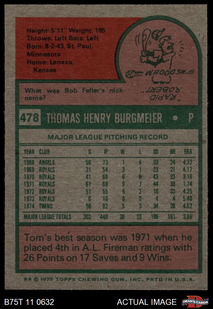 1975 Topps #478 Tom Burgmeier 7 - NM