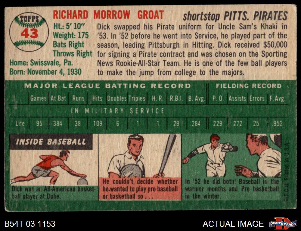 1954 Topps #43 WHT Dick Groat
