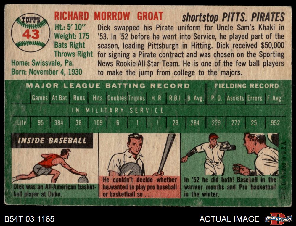 1954 Topps #43 WHT Dick Groat 3.5 - VG+