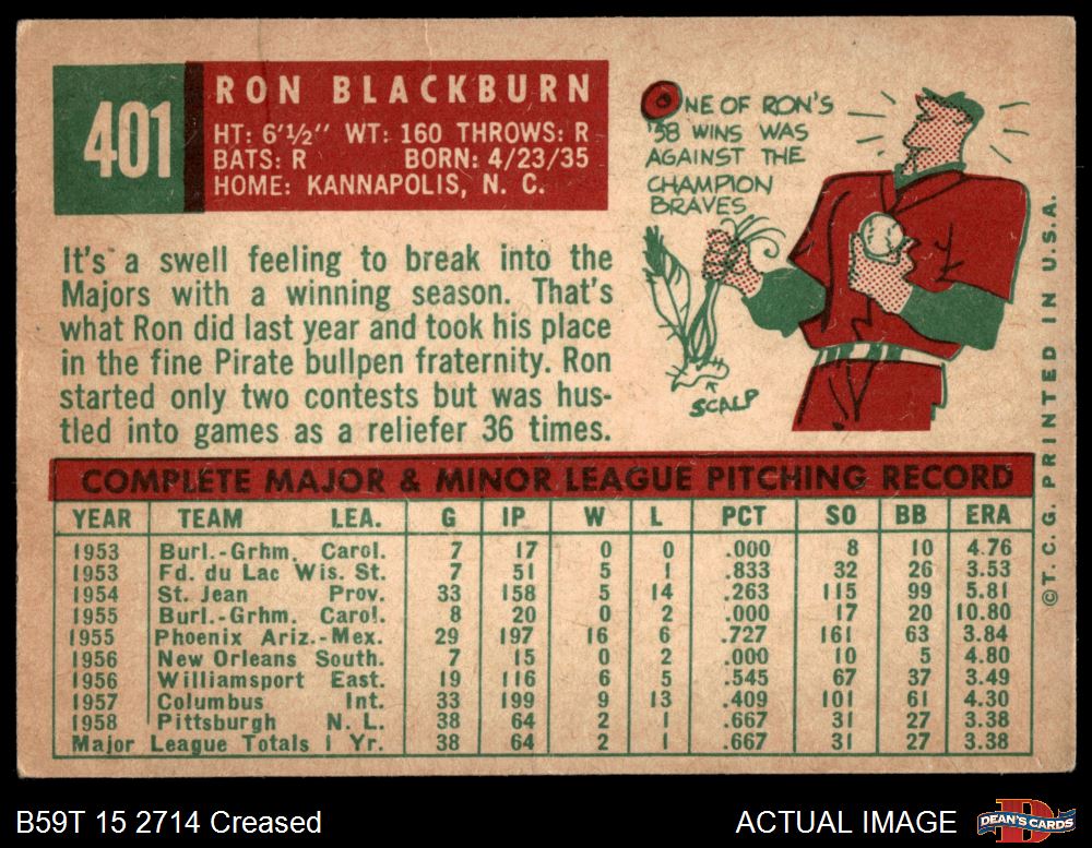 1959 Topps #401 Ron Blackburn