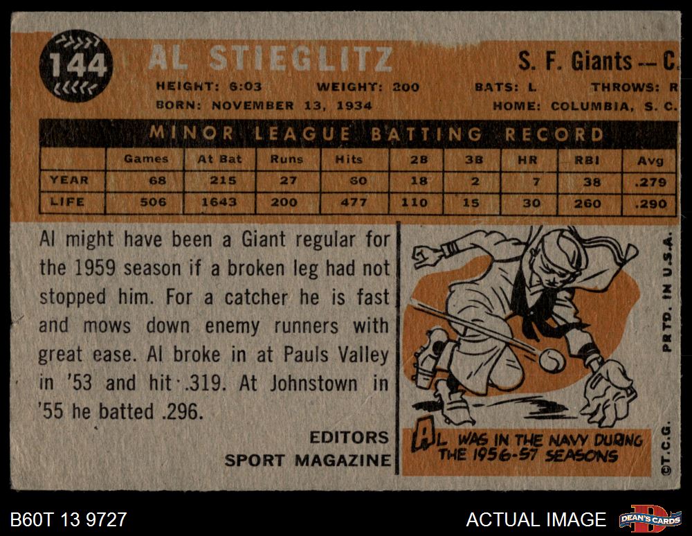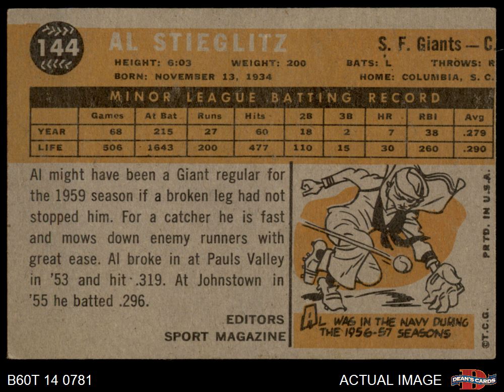 1960 Topps #144 - Al Stieglitz Rookie Star 1.5 - FAIR