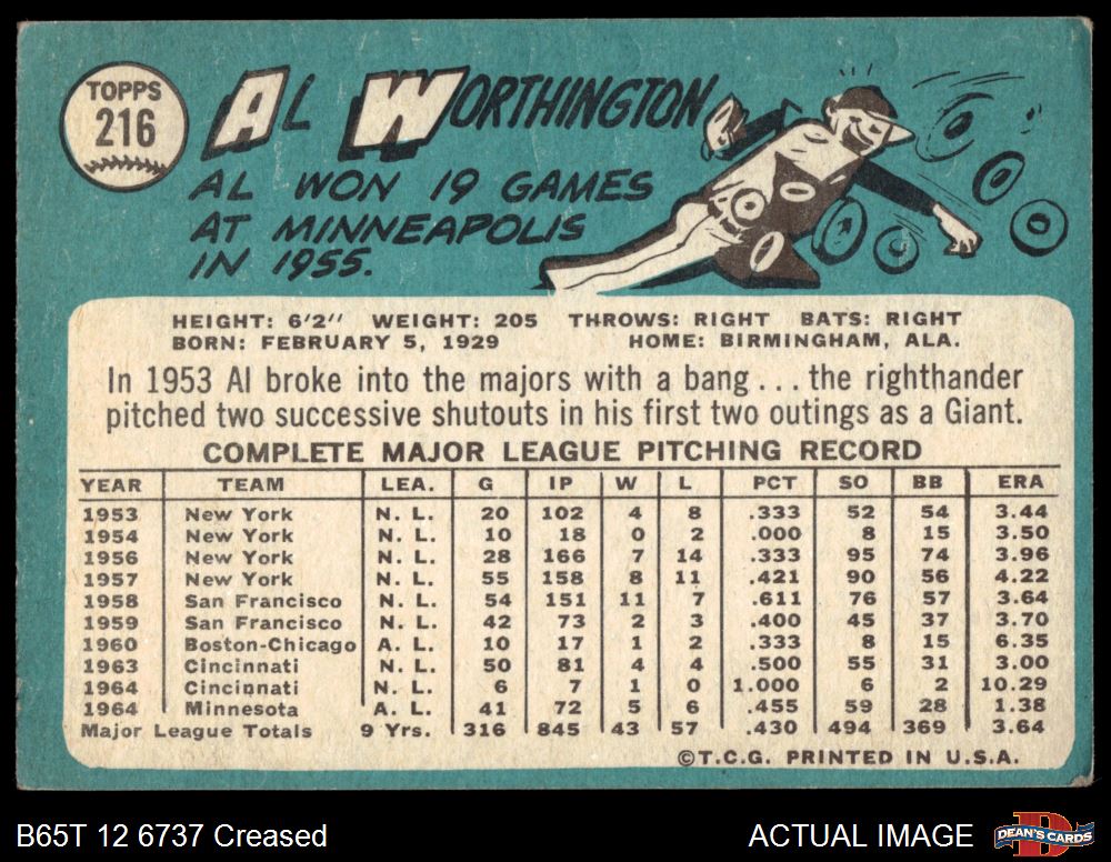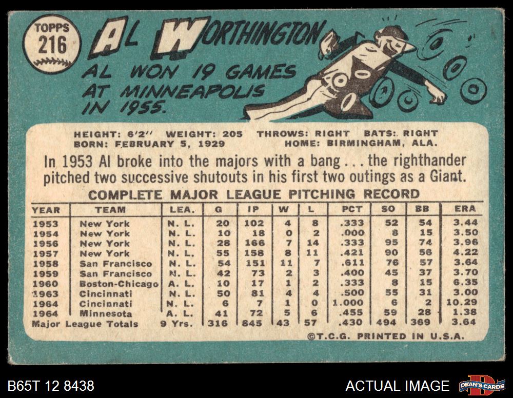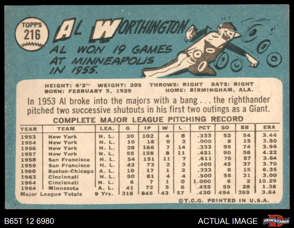 1965 Topps #216 Al Worthington