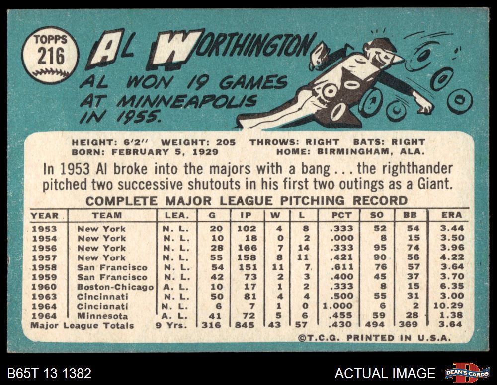 1965 Topps #216 Al Worthington 4 - VG/EX
