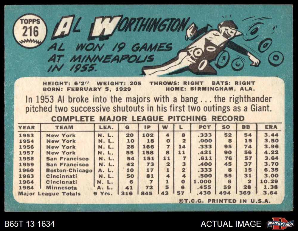 1965 Topps #216 Al Worthington 4.5 - VG/EX+