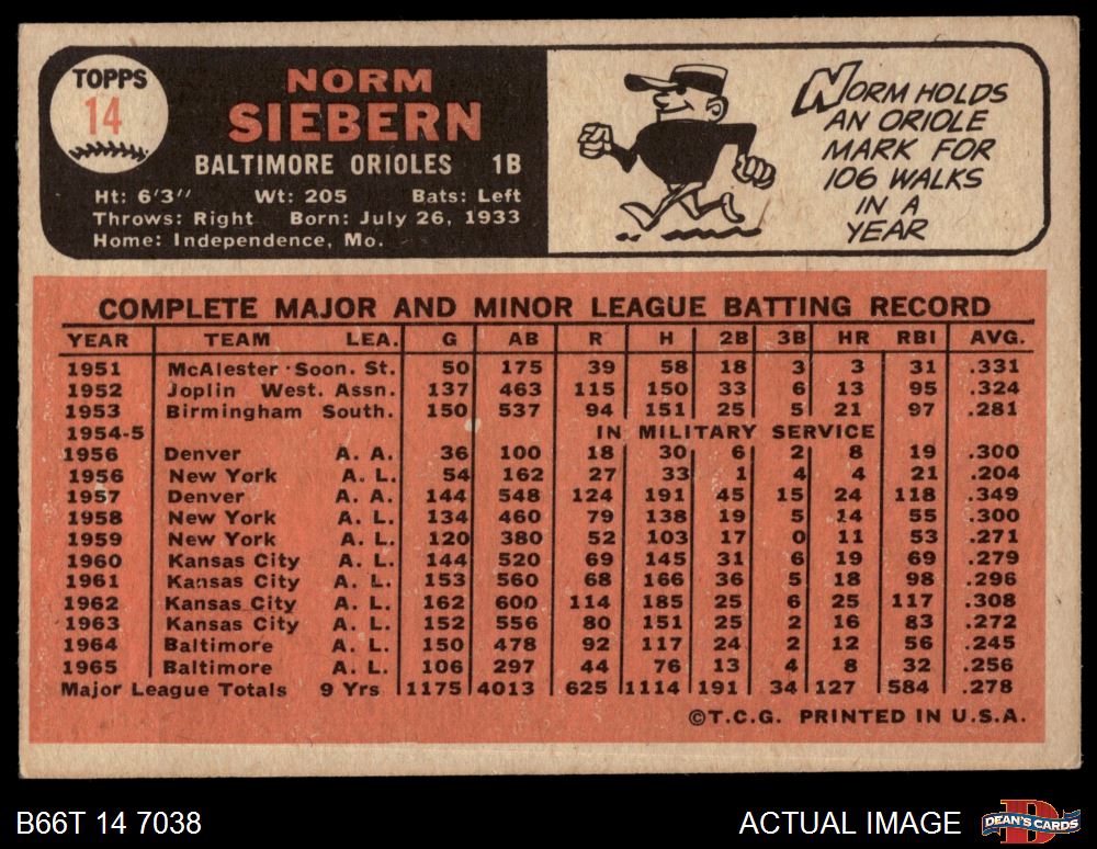 1966 Topps #14 Norm Siebern 4 - VG/EX