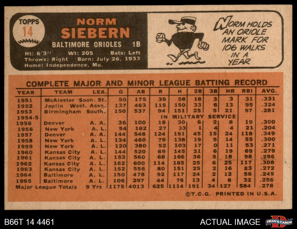 1966 Topps #14 Norm Siebern 5 - EX