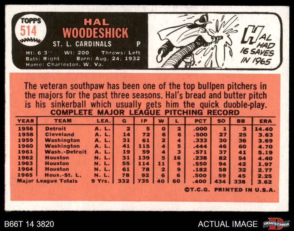 1966 Topps #514 Hal Woodeshick 5.5 - EX+