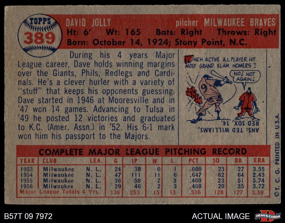 1957 Topps #389 Dave Jolly 3 - VG