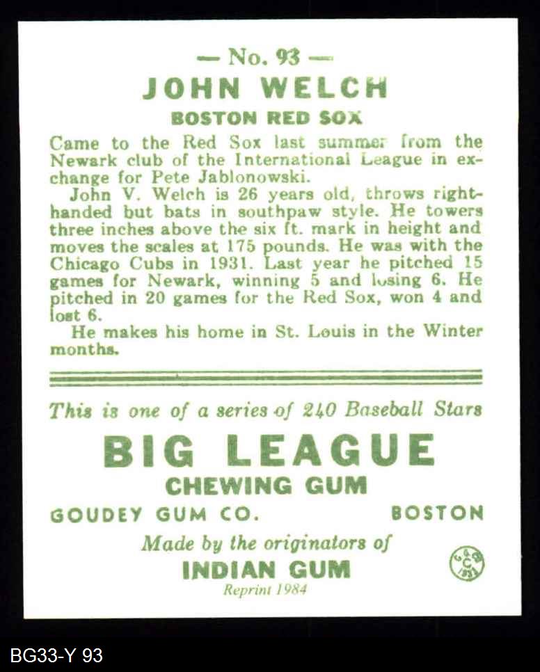1933 Goudey Reprint (1,571 available)1933 Goudey Reprint Red Sox (47 available)