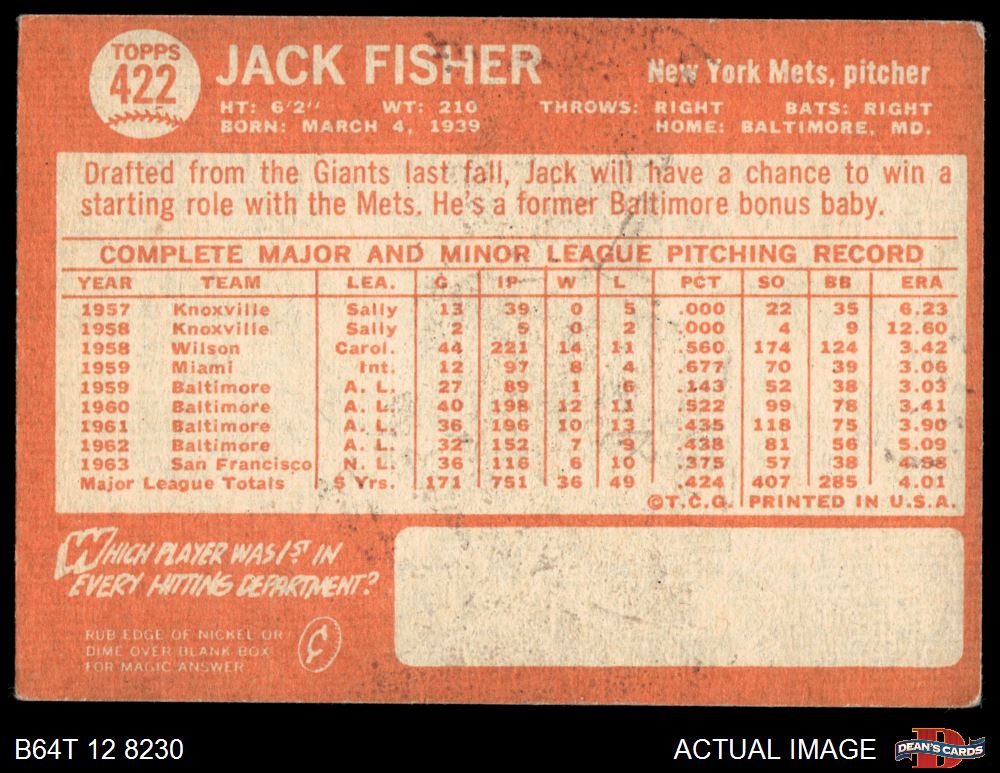 1964 Topps #422 Jack Fisher