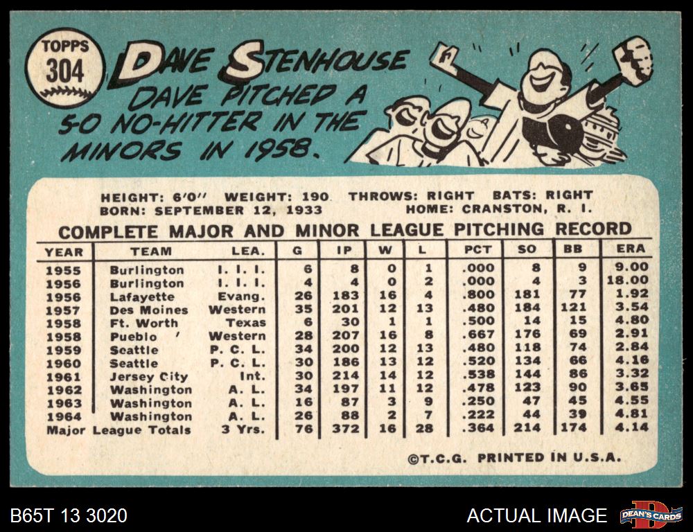 1965 Topps #304 Dave Stenhouse 6 - EX/MT