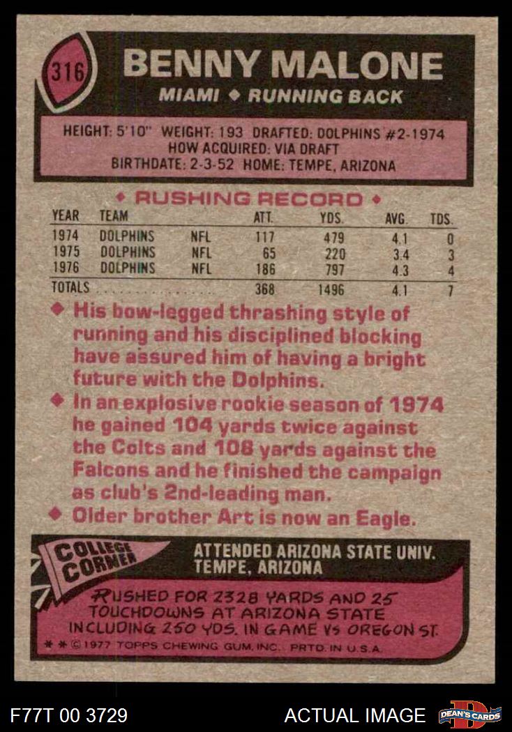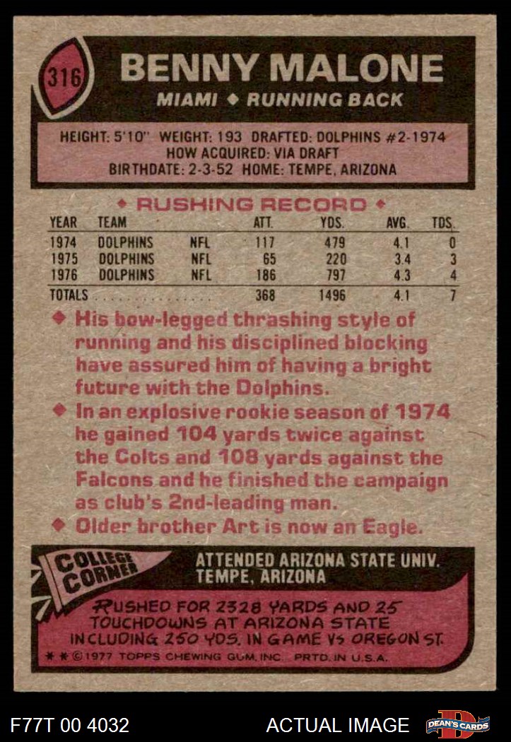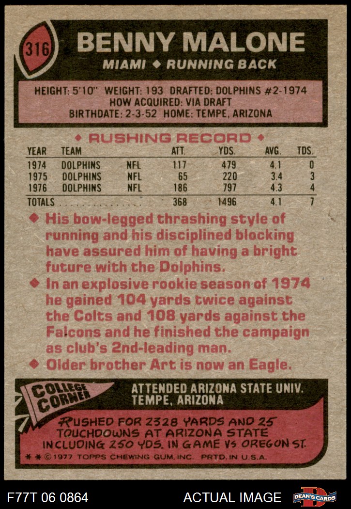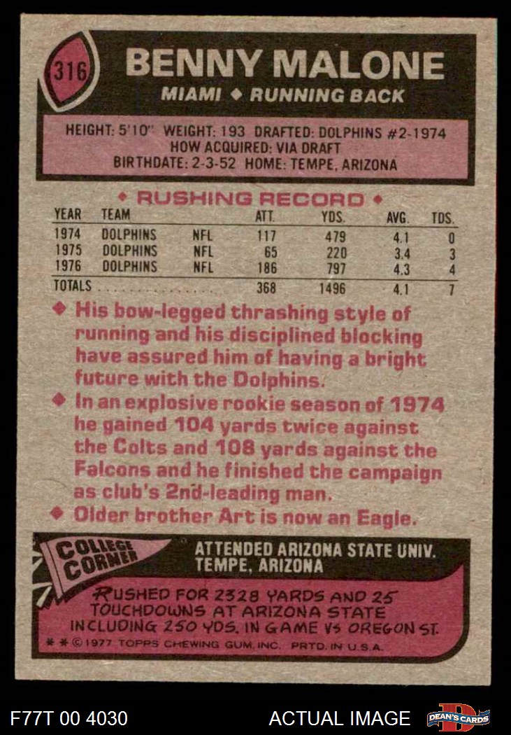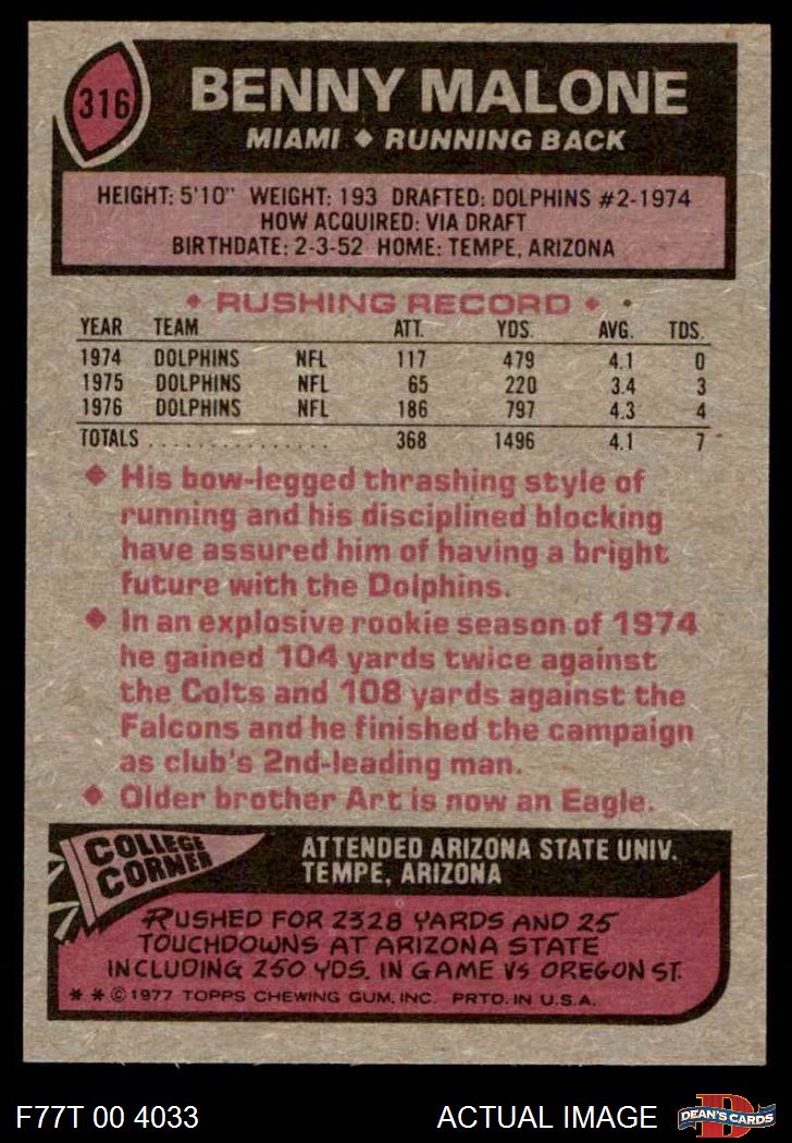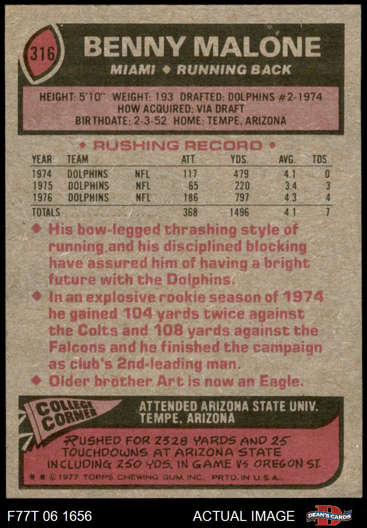 1977 Topps #316 Benny Malone 6 - EX/MT