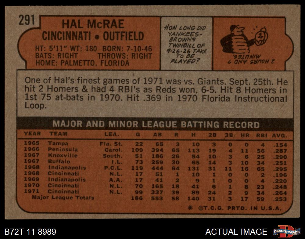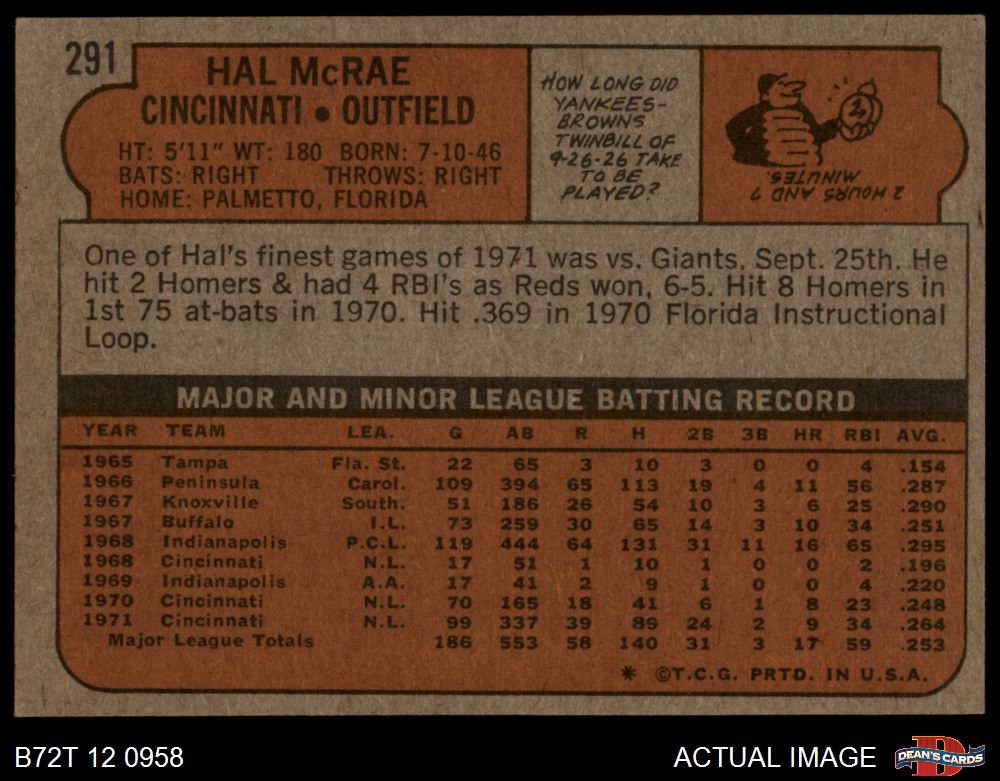 1972 Topps #291 Hal McRae