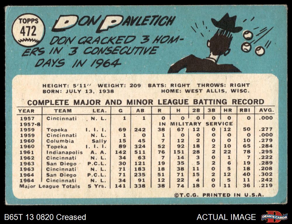 1965 Topps #472 Don Pavletich 2 - GOOD