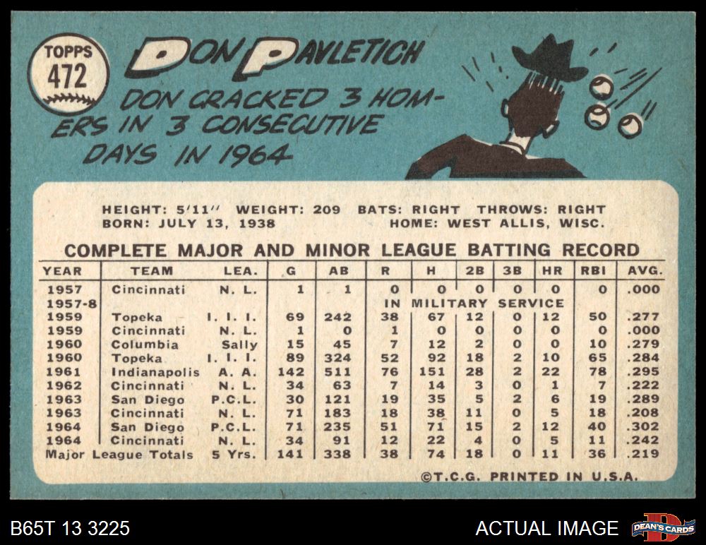 1965 Topps #472 Don Pavletich 5 - EX