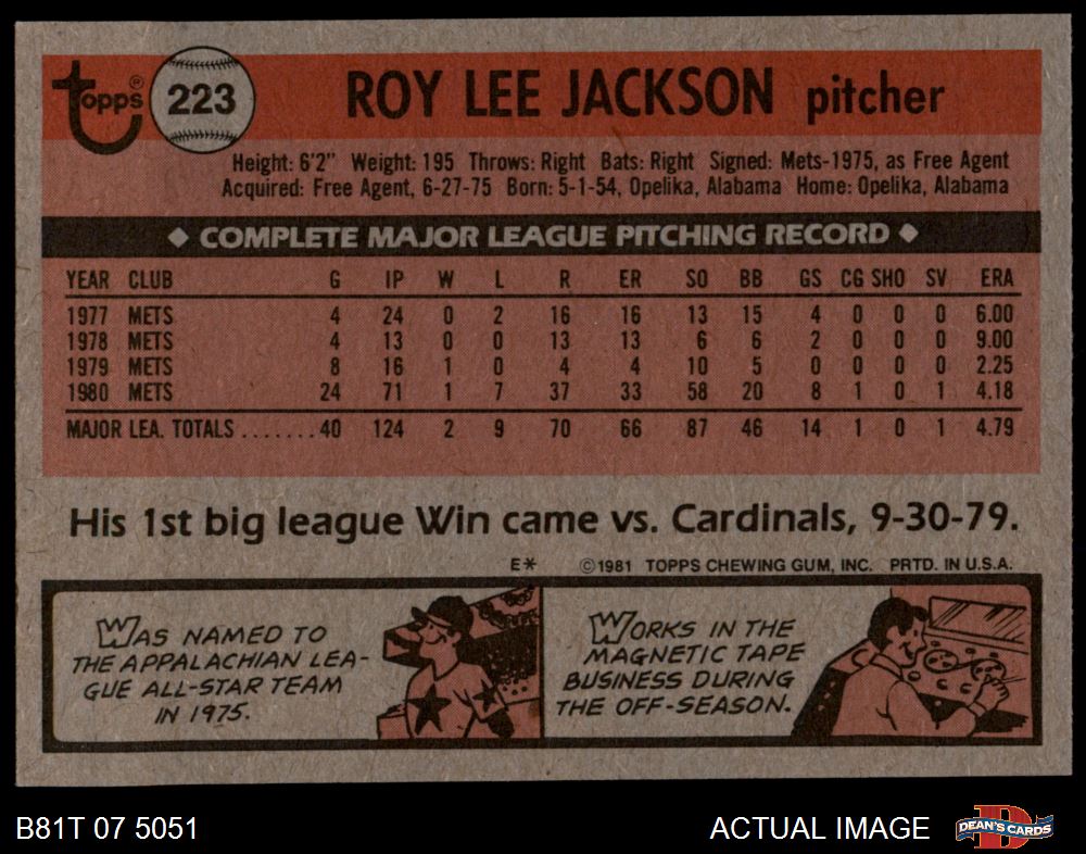1981 Topps #223 Roy Lee Jackson
