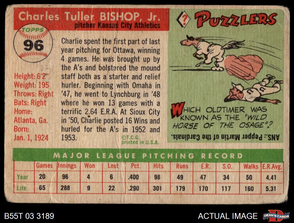 1955 Topps #96 Charlie Bishop AUTHENTIC