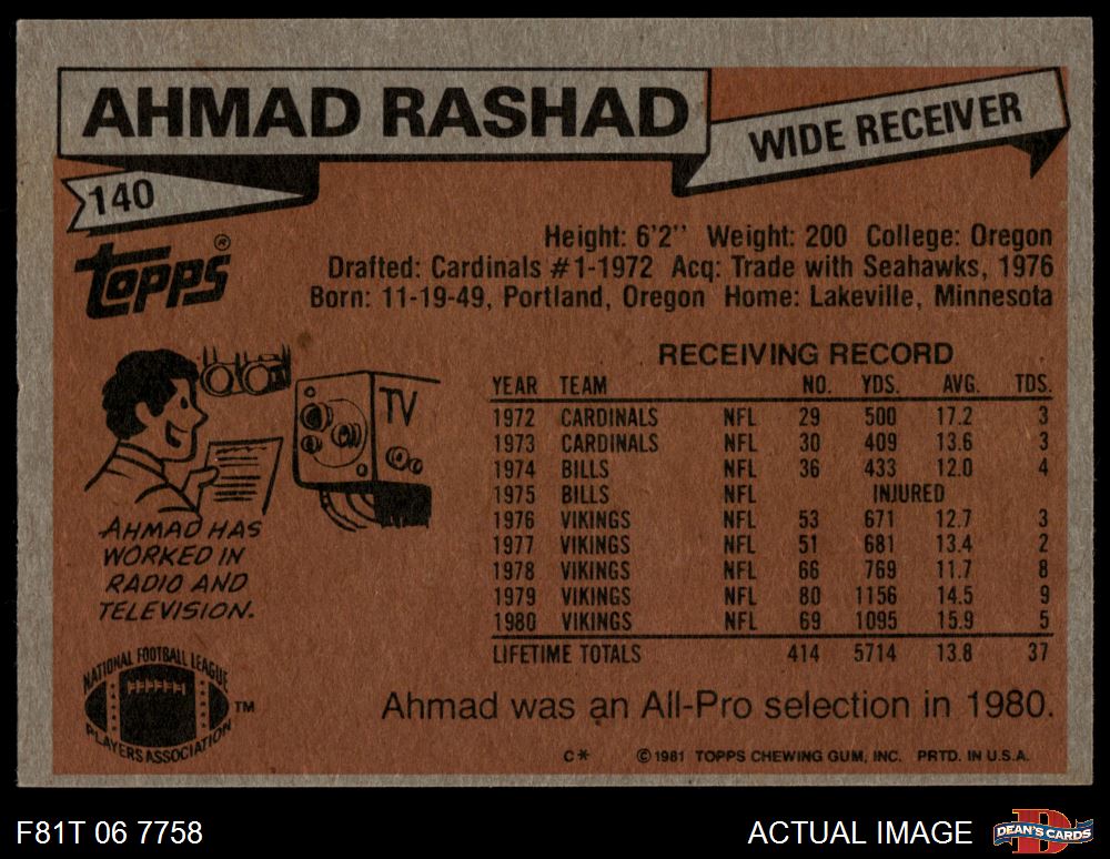 1981 Topps #140 Ahmad Rashad 6 - EX/MT