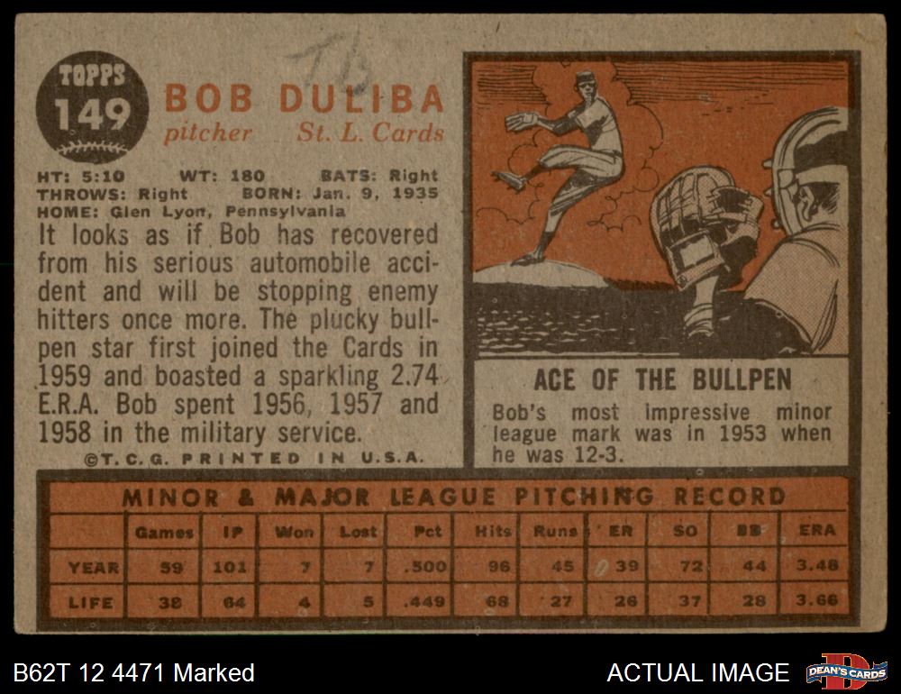 1962 Topps #149 NRM Bob Duliba 1 - POOR