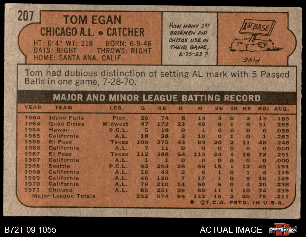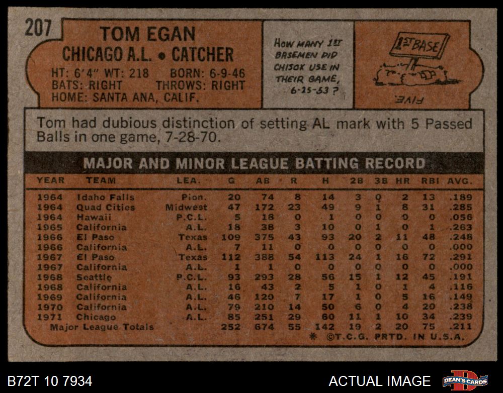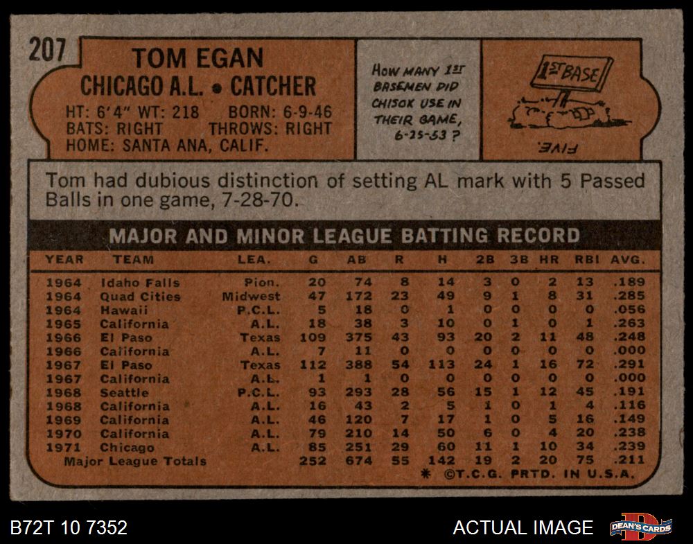 1972 Topps #207 Tom Egan 3 - VG