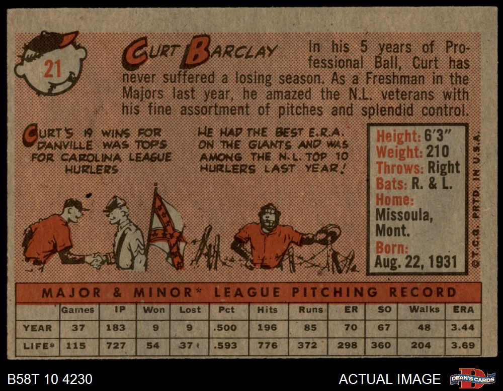 1958 Topps #21 Curt Barclay 4 - VG/EX