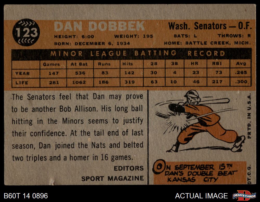 1960 Topps Baseball Cards (10,220 available)1960 Topps Senators (713 available)