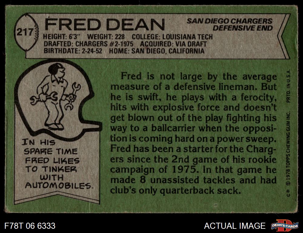 1978 Topps #217 Fred Dean 1.5 - FAIR