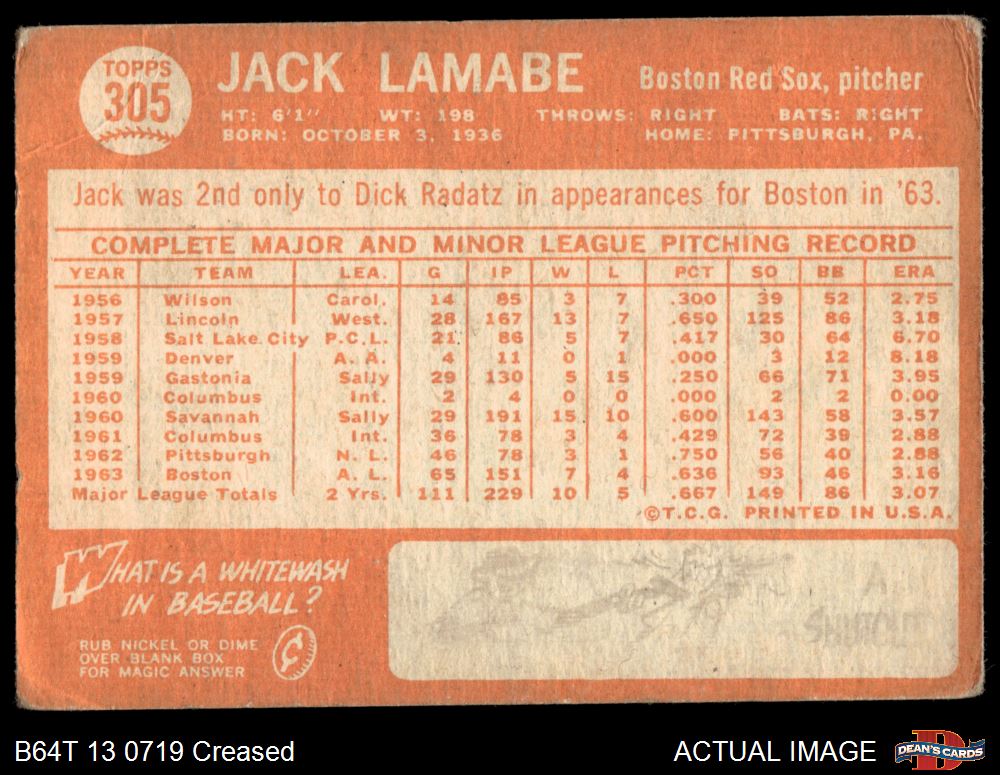 1964 Topps #305 Jack Lamabe 1 - POOR