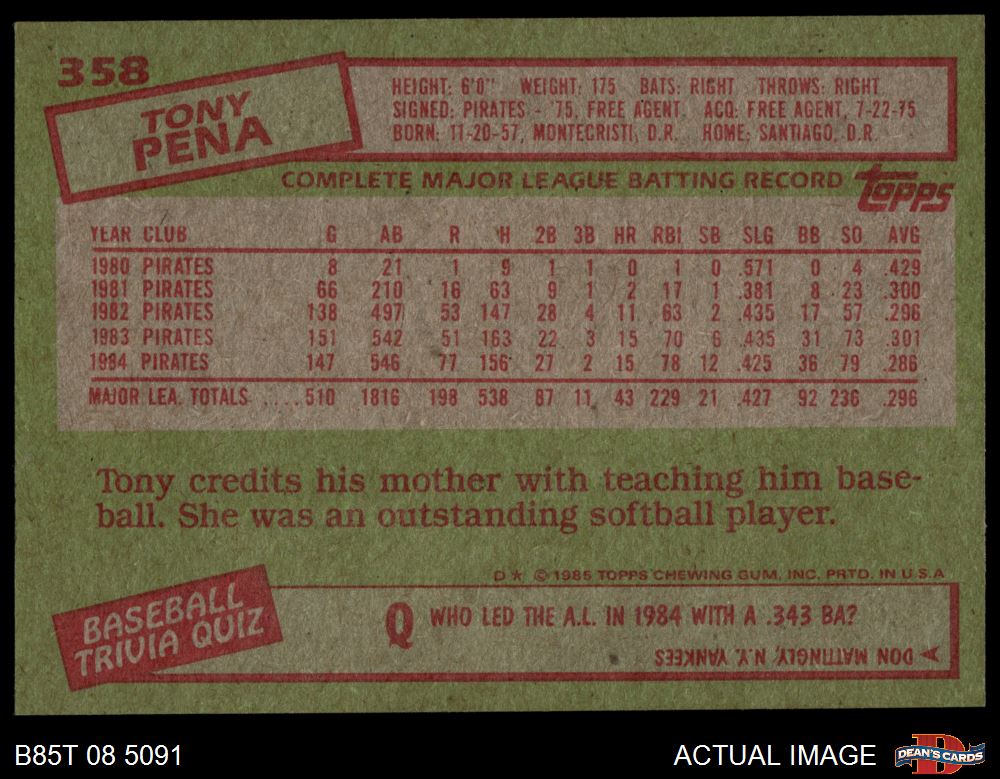 1985 Topps #358 Tony Pena 8 - NM/MT
