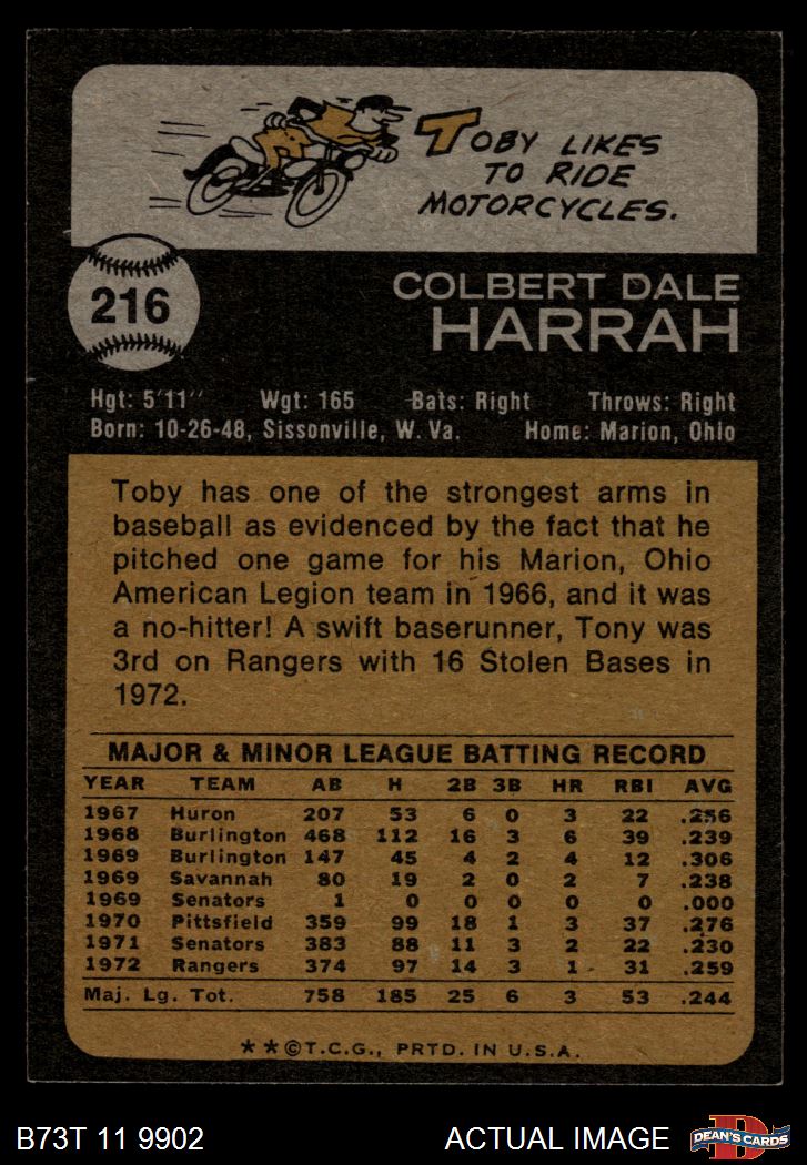 1973 Topps #216 Toby Harrah 7 - NM