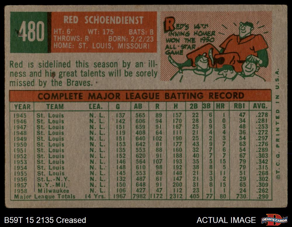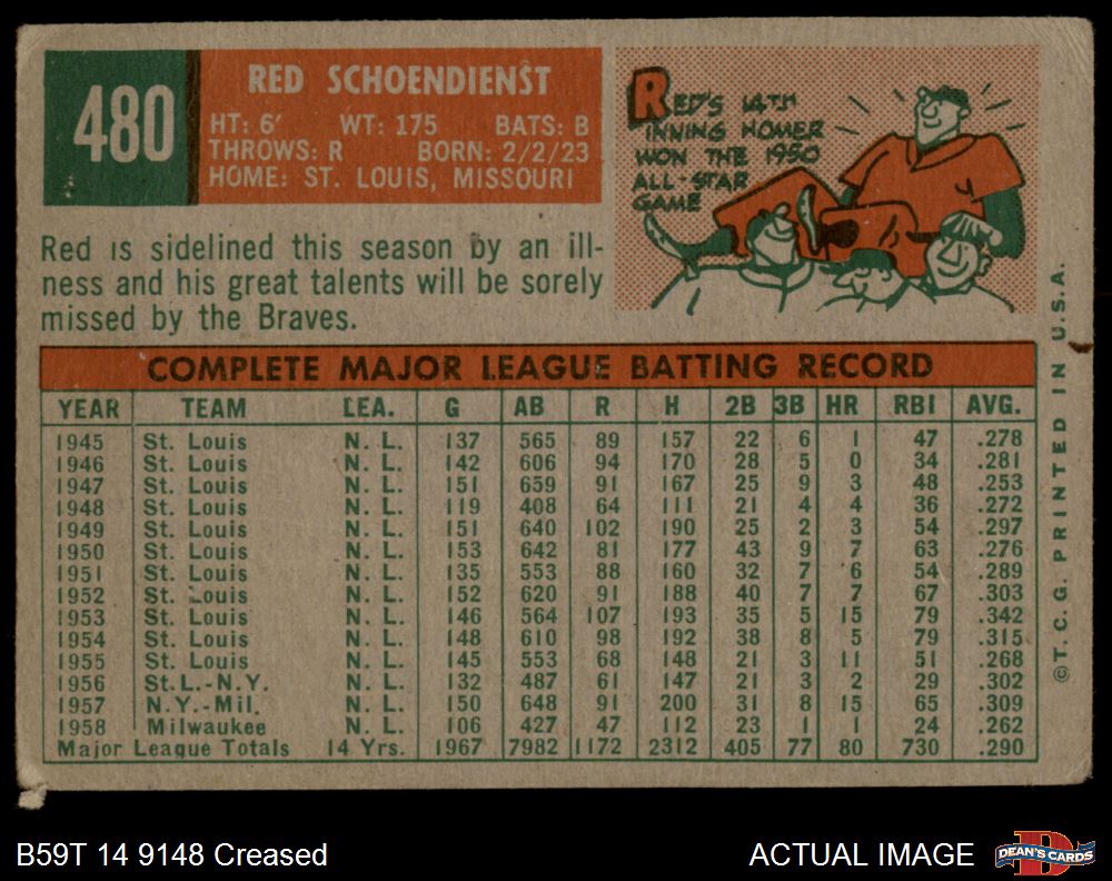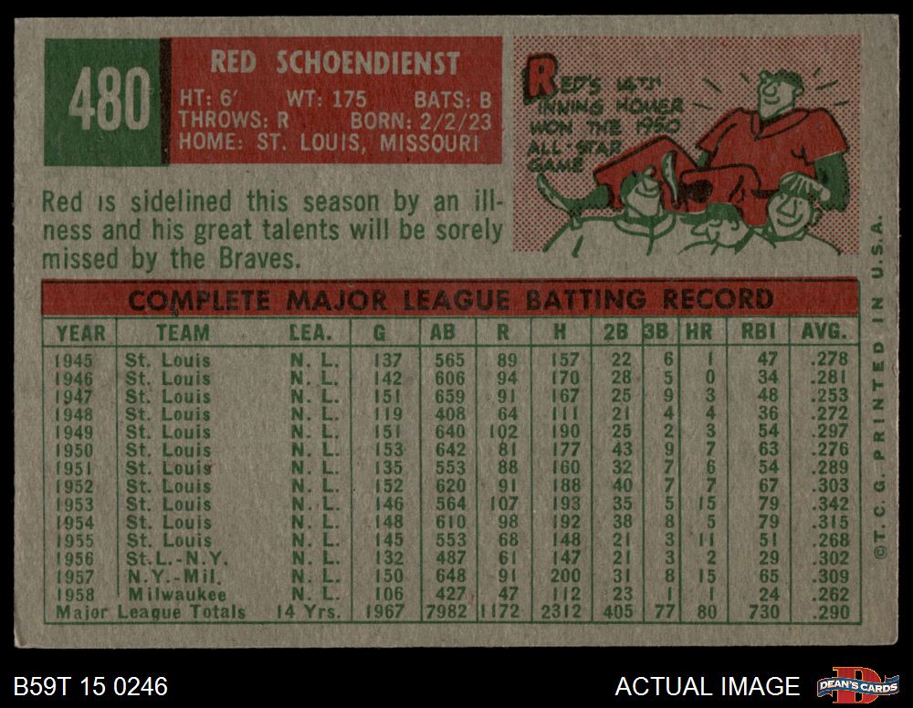 1959 Topps #480 Red Schoendienst 2 - GOOD