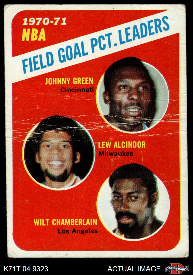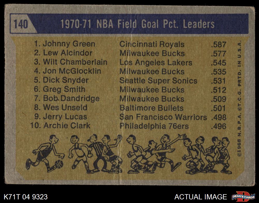 1971 Topps #140 - Johnny Green / Wilt Chamberlain / Lew Alcindor NBA Field Goal Pct Leaders 1 - POOR
