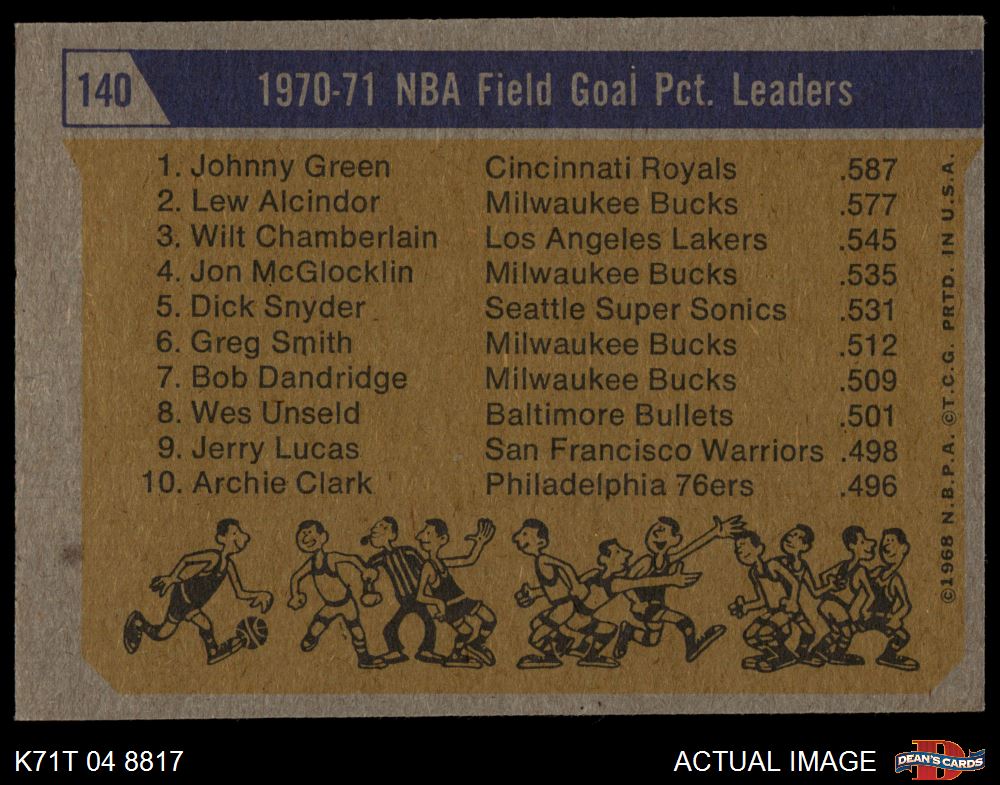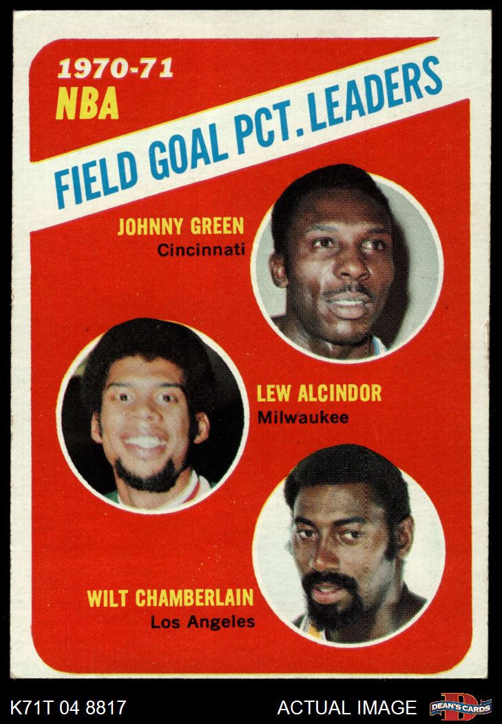 1971 Topps #140 - Johnny Green / Wilt Chamberlain / Lew Alcindor NBA Field Goal Pct Leaders 4 - VG/EX