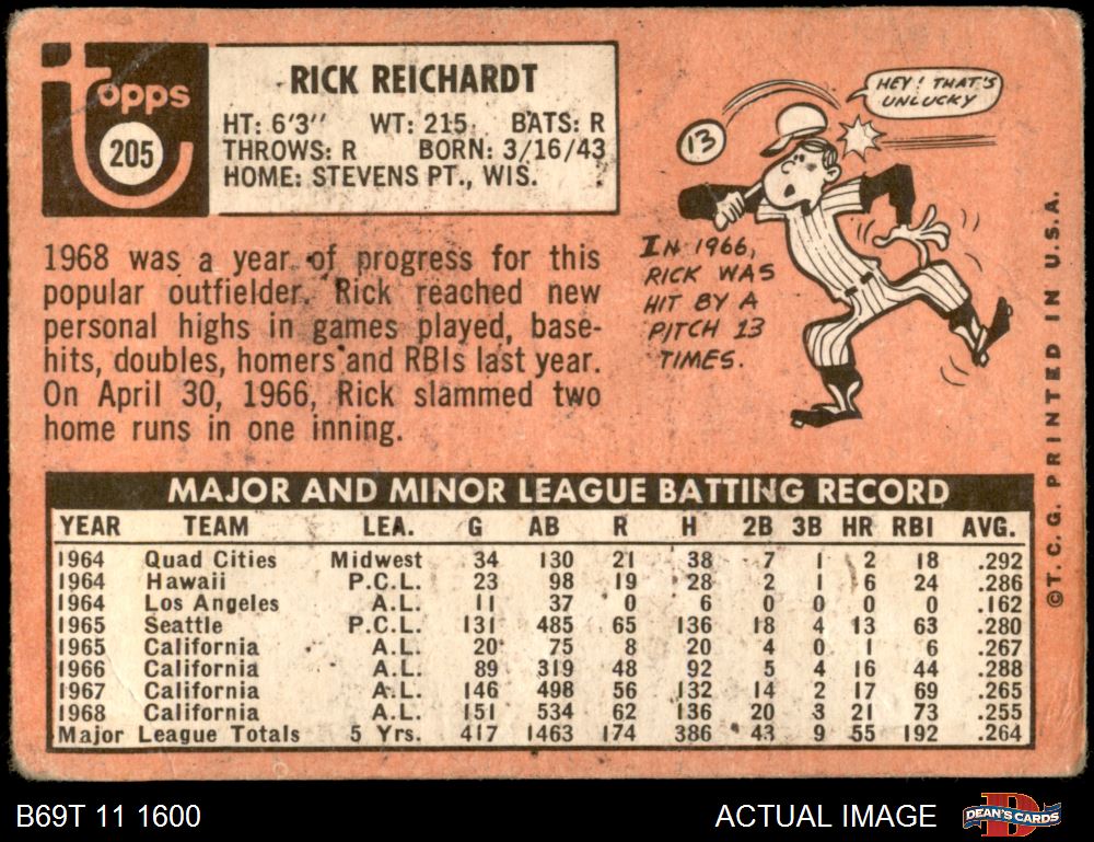 1969 Topps #205 Rick Reichardt AUTHENTIC