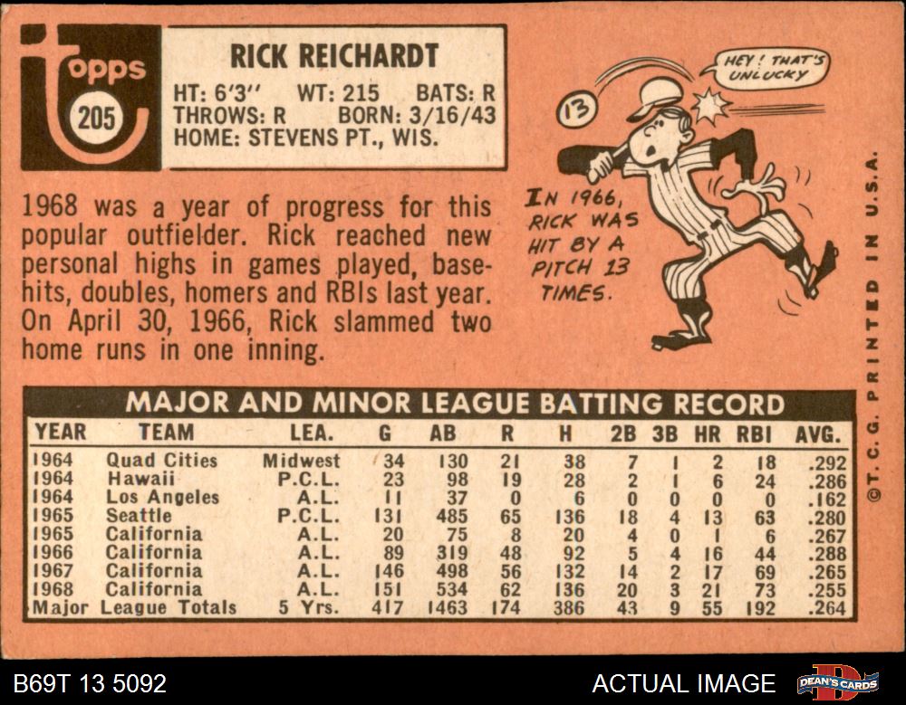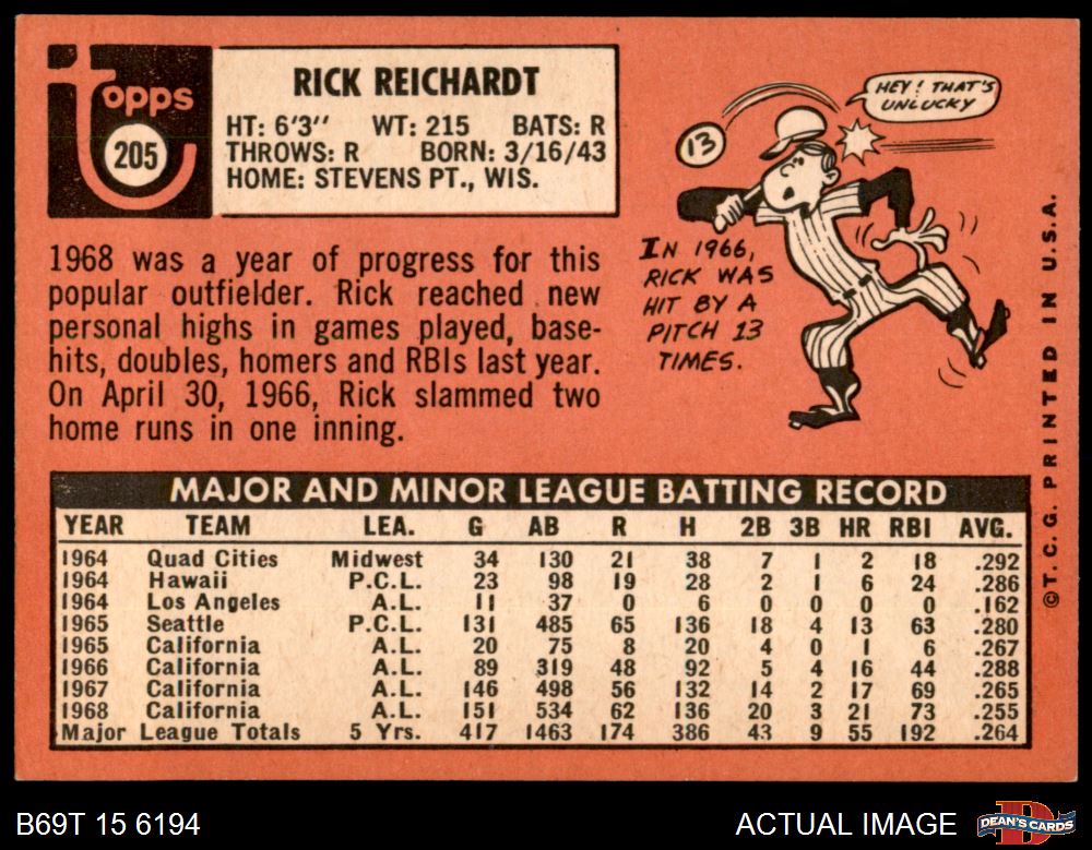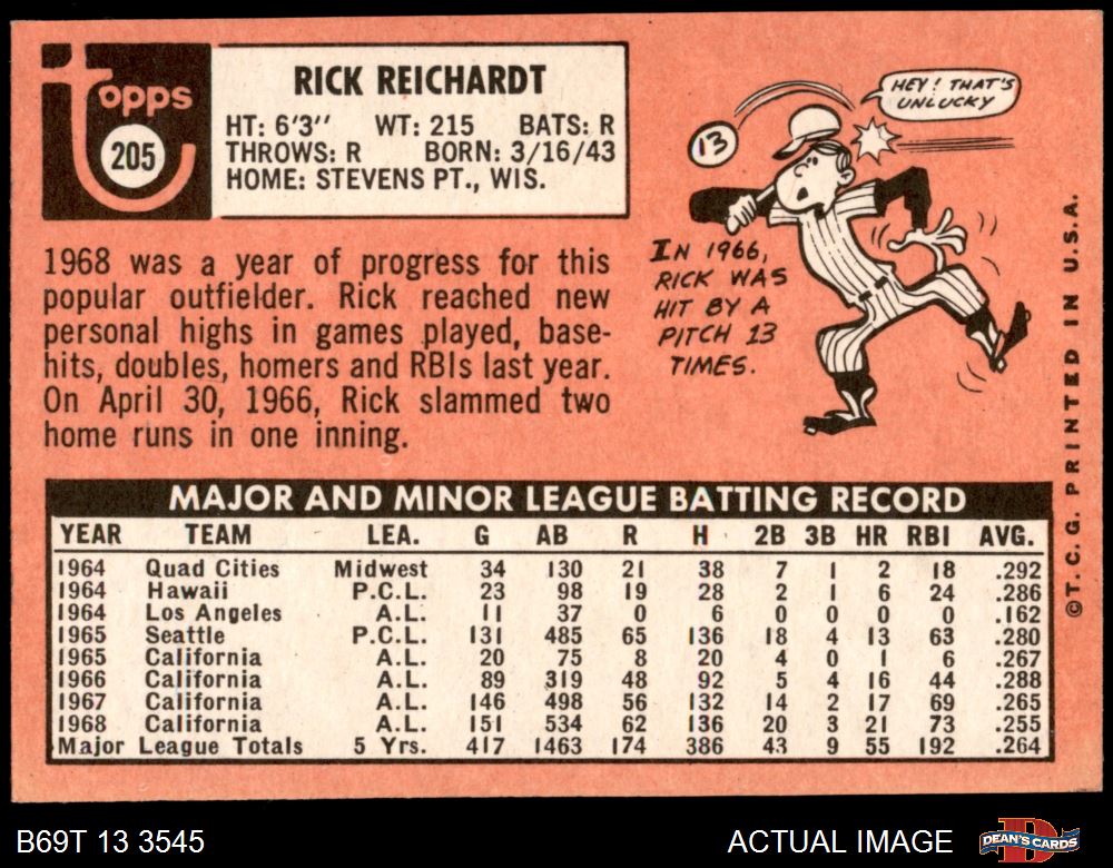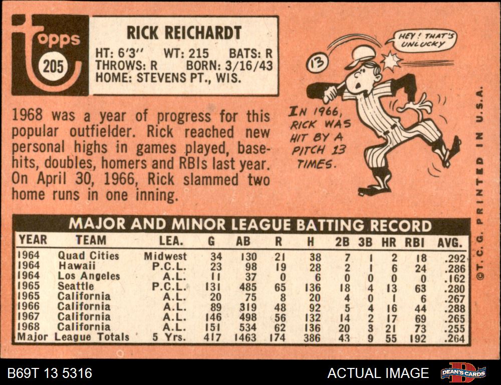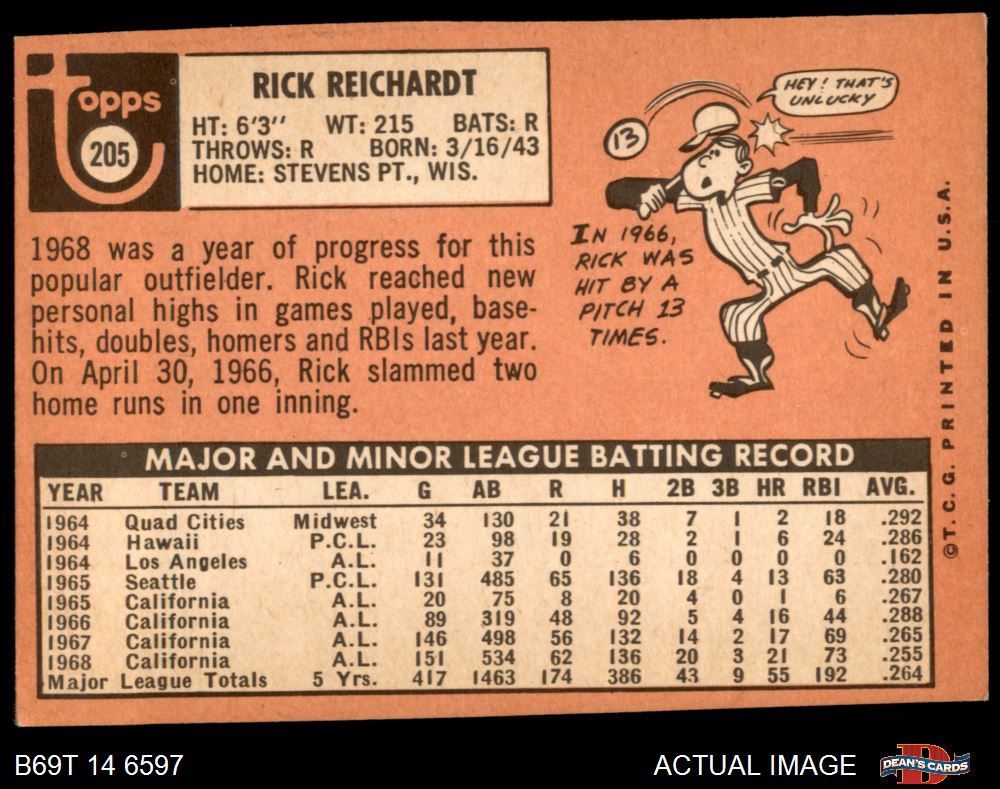1969 Topps #205 Rick Reichardt 6 - EX/MT