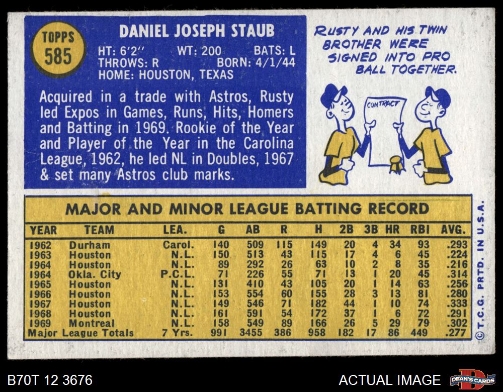 1970 Topps #585 Rusty Staub 5 - EX