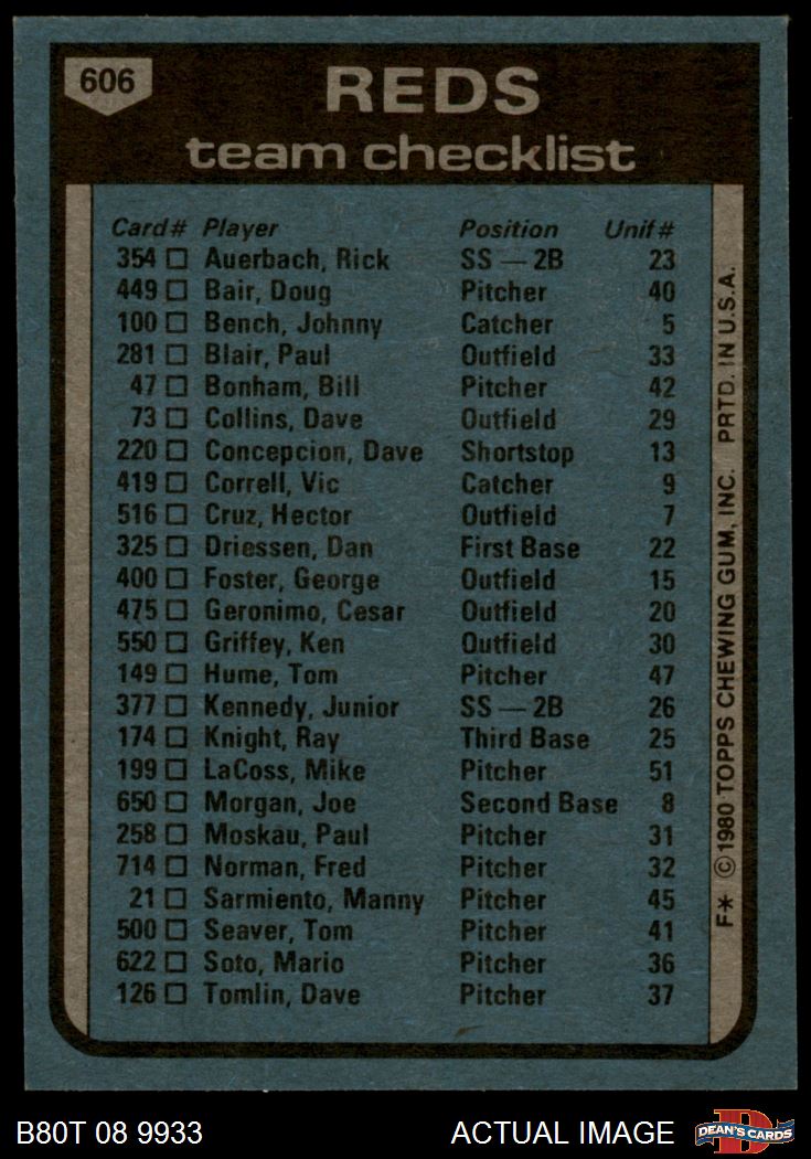 1980 Topps #606 Reds Team Checklist