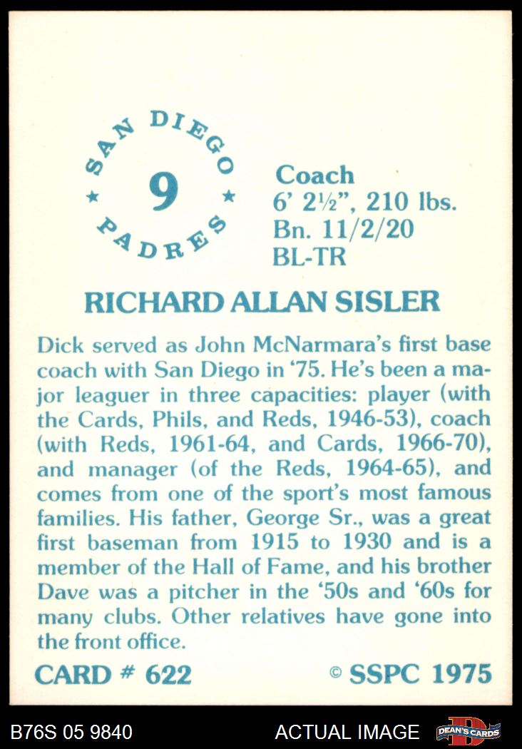 1975 SSPC #622 Dick Sisler 8 - NM/MT