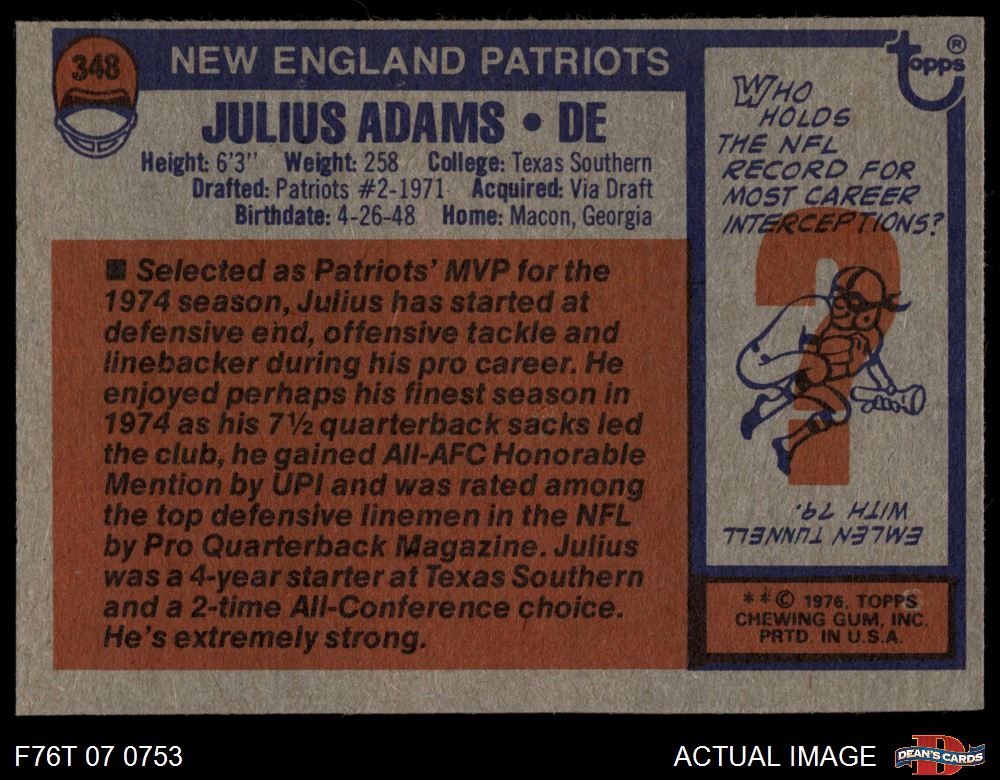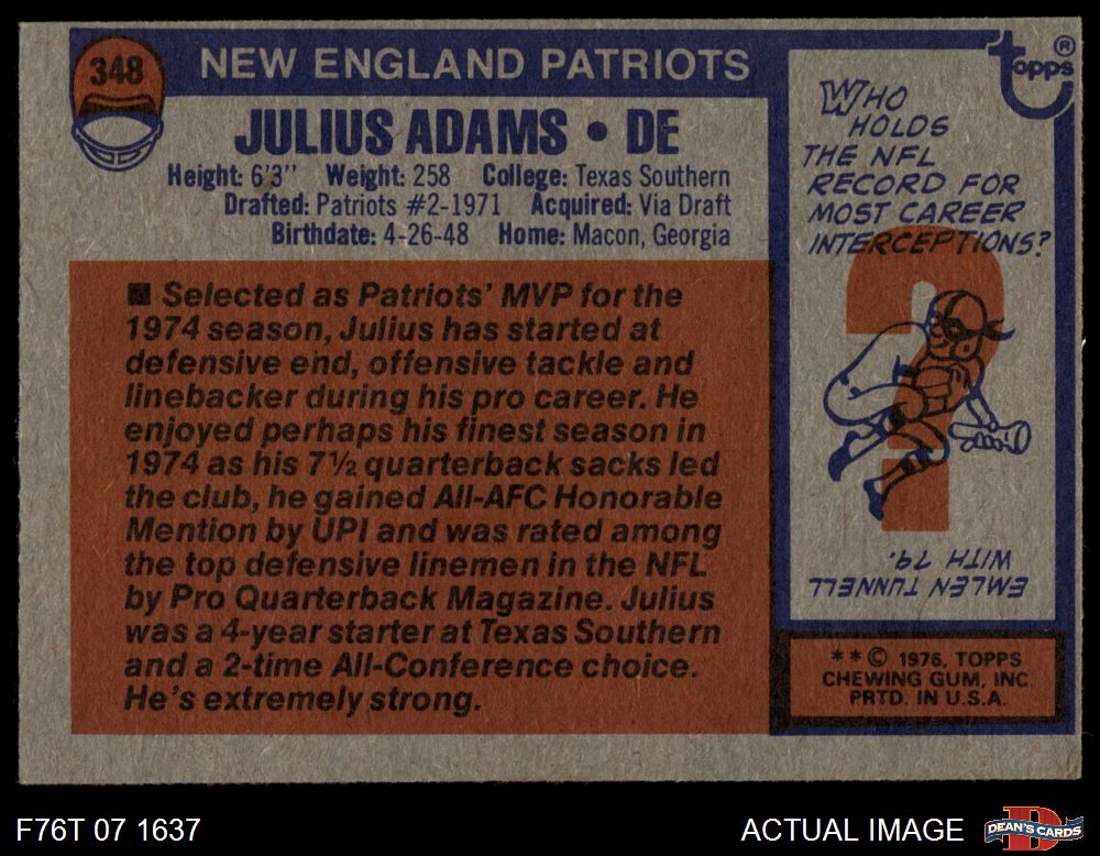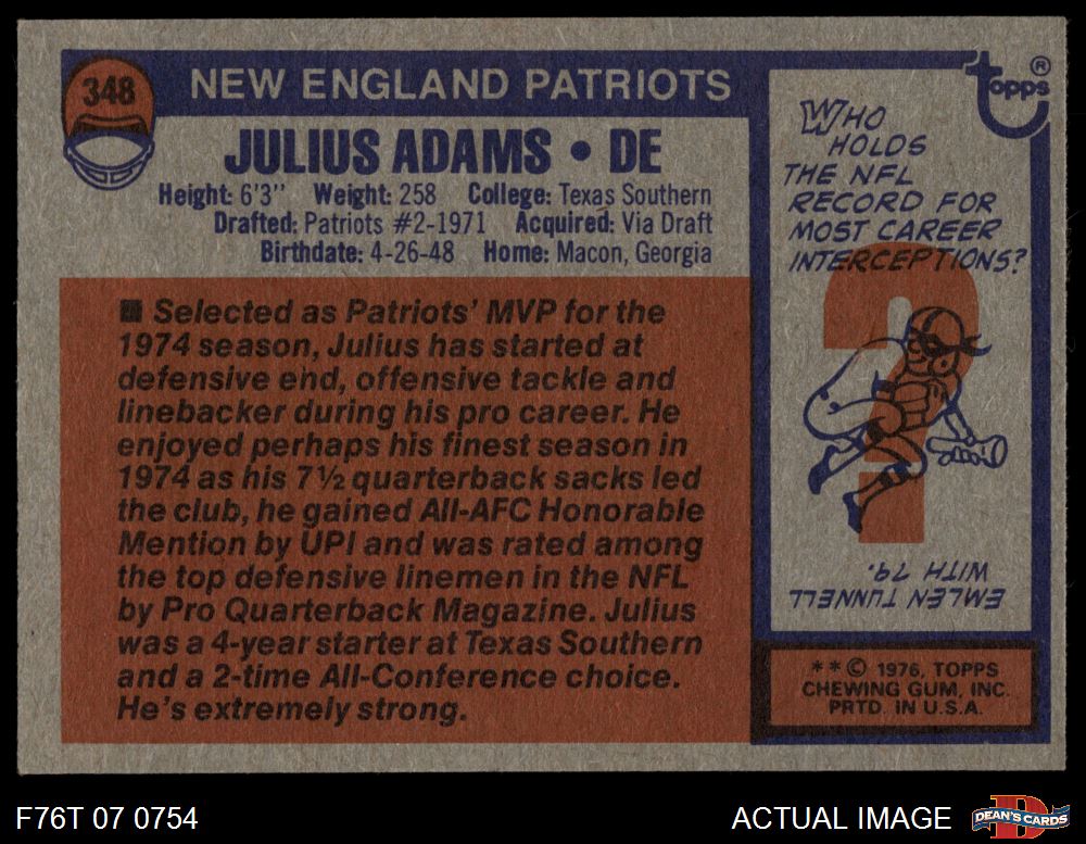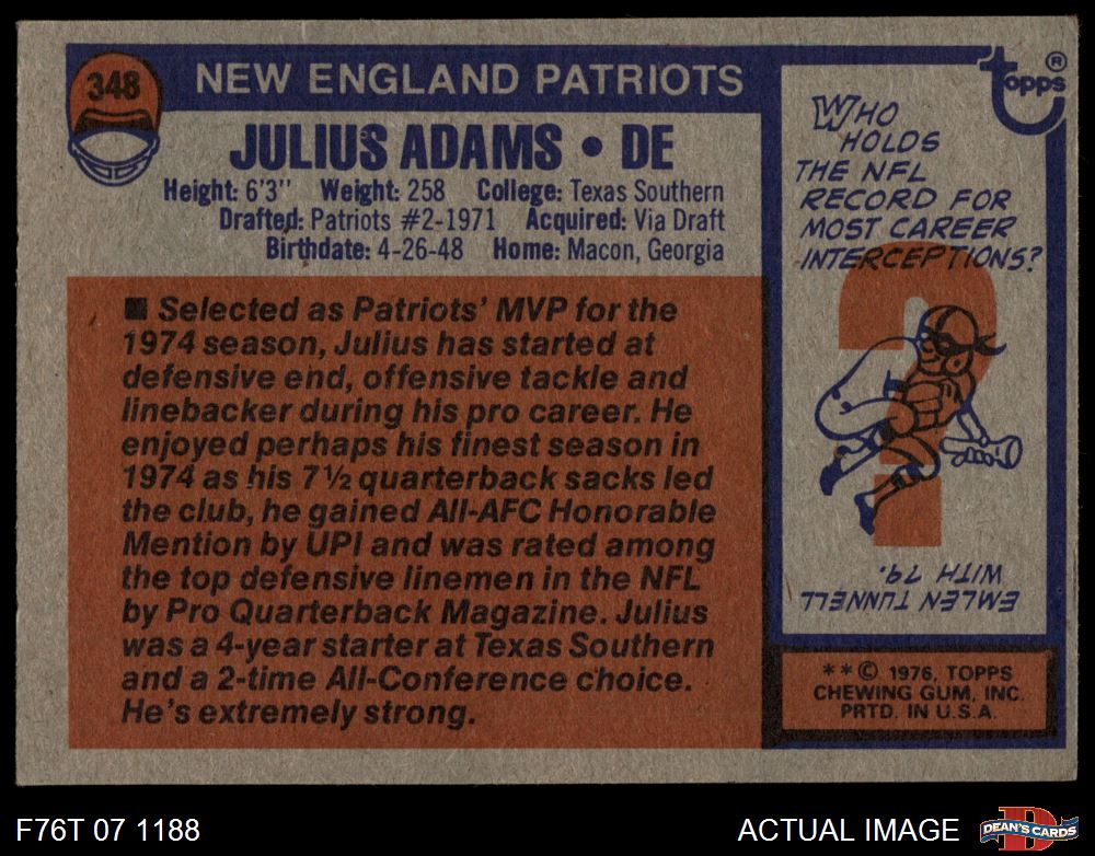 1976 Topps #348 Julius Adams