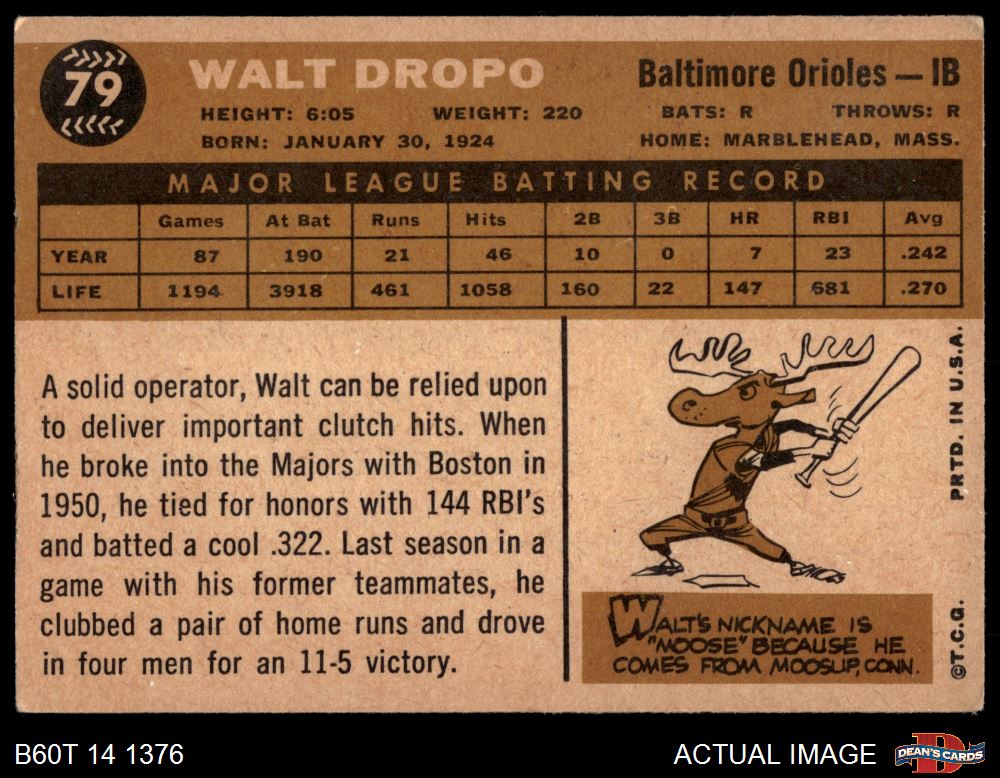 1960 Topps #79 Walt Dropo