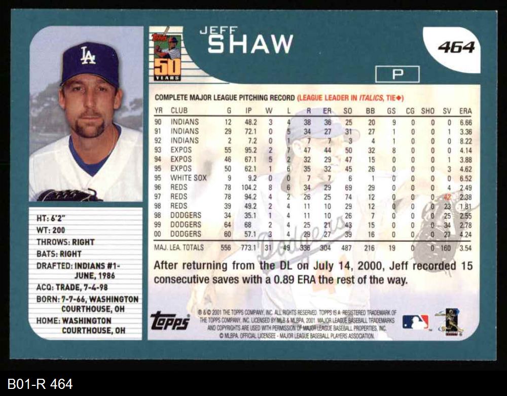 2001 Topps #464 Jeff Shaw 8 - NM/MT