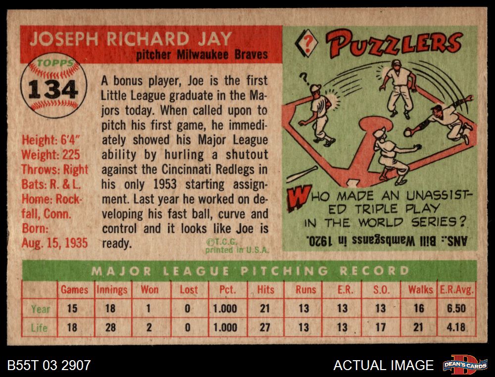 1955 Topps #134 Joey Jay