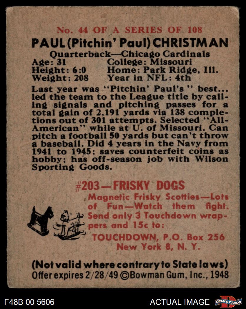 1948 Bowman #44 Paul Christman