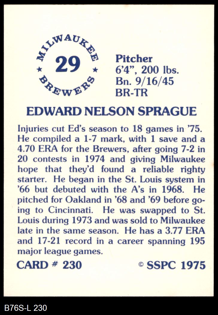 1975 SSPC #230 Ed Sprague