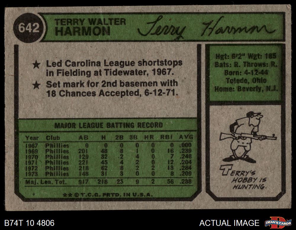 1974 Topps #642 Terry Harmon 2 - GOOD