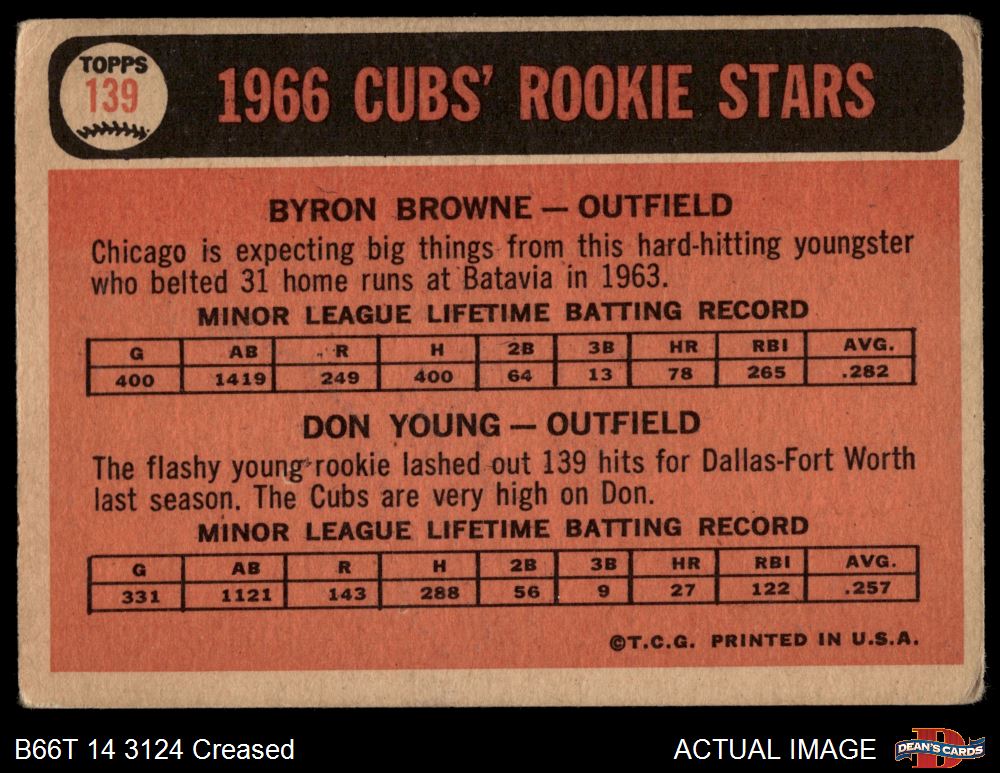 1966 Topps #139  -  Bryon Browne / Don Young Cubs Rookies Front Thumbnail