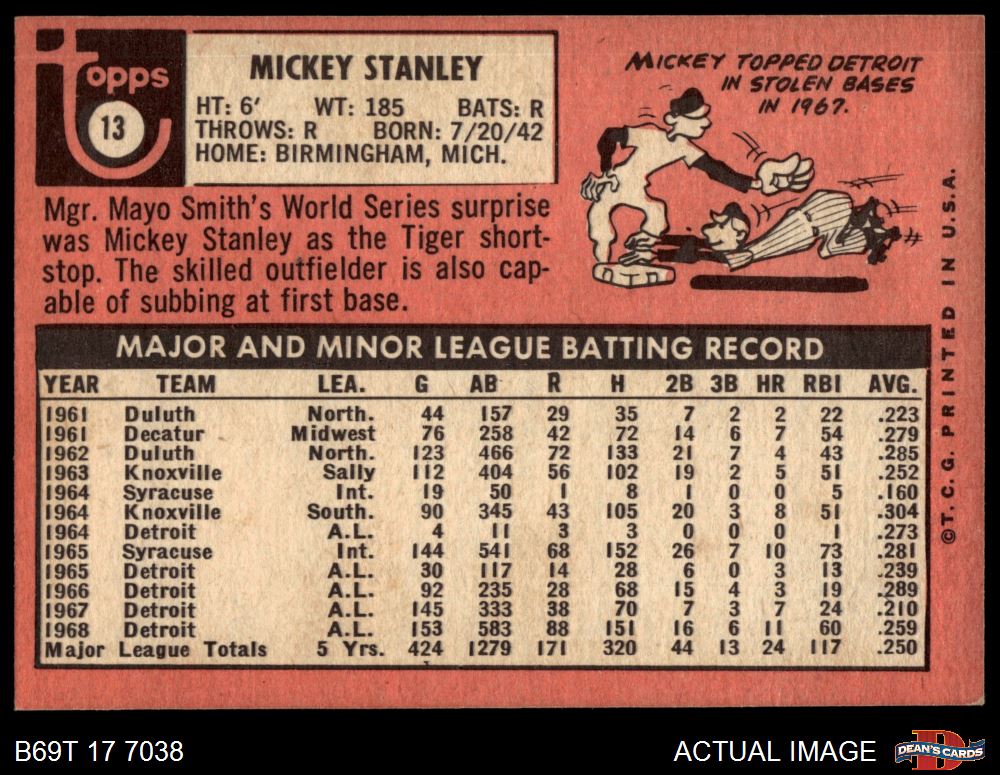 1969 Topps #13 Mickey Stanley 4 - VG/EX